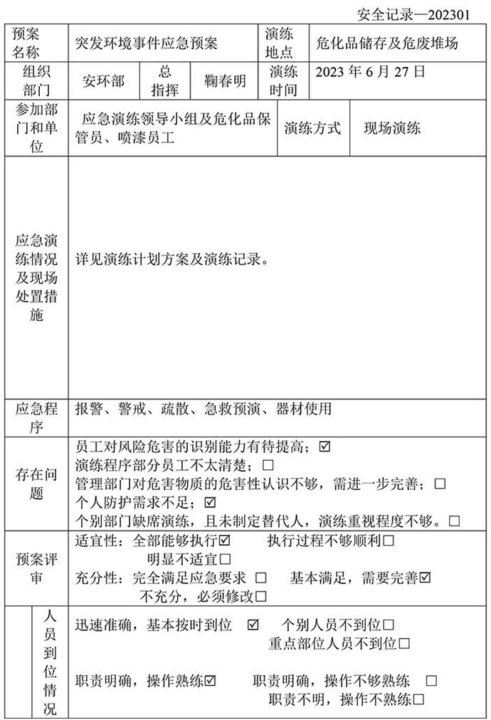 新聞中心 首頁>新聞中心 無錫四方友信股份有限公司危廢意外事故應急預案演練記錄 發布時間:2023/8/9 16:27:37瀏覽次數: 次 推薦新聞 無錫四方友信股份有限公司危廢意外事故應急預案演練記錄 2023/08/09 質量信用報告 2024/04/18